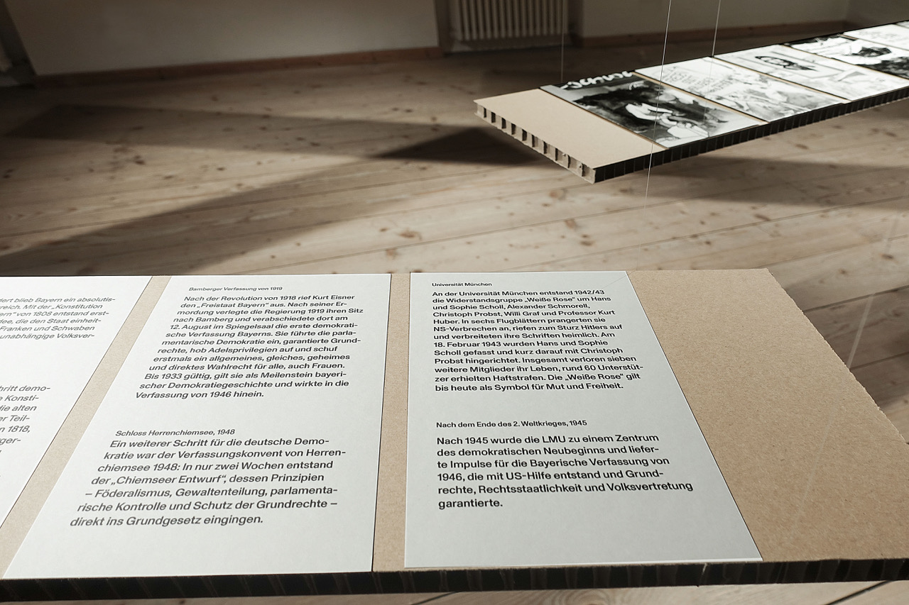 Das künstlerische Kooperationsprojekt „Spuren der Demokratie“ von Monika Huber und Hannah Kansy erkundet die Entwicklung der Demokratie in Bayern – von den Bauernkriegen des 16. Jahrhunderts über die Entstehung der Bayerischen Verfassung bis zu den Protestbewegungen seit den 1960er-Jahren bis in die Gegenwart.